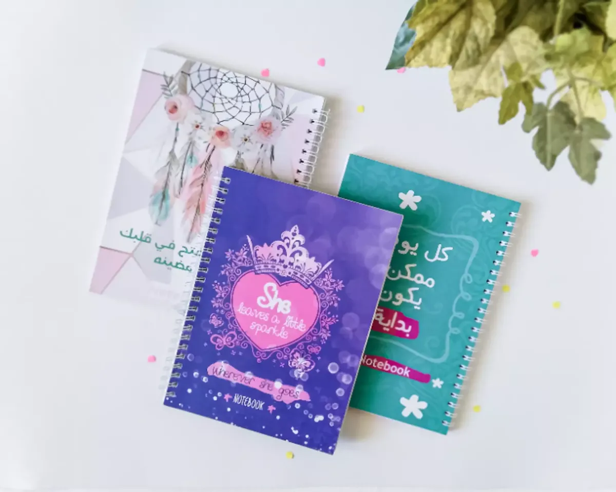 - Notebook with names - Size : A5, 21*15 - Ruled, 60 pages - Cover Material: 300gsm Cushion with Wire - The notebook has the name written in English on the left cover and in Arabic on the right cover - Available in many names