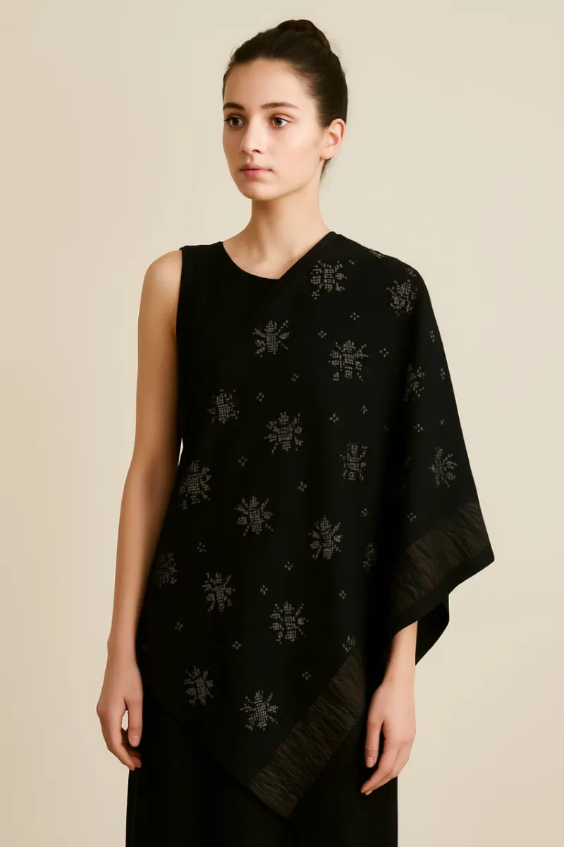 A silver embroidered tally shawl with enchanting silver threads that makes it a unique distinctive piece
